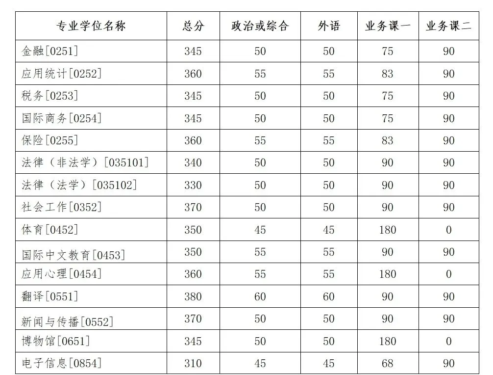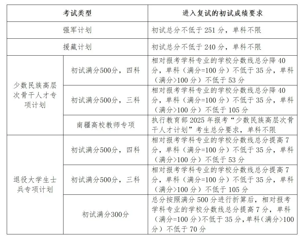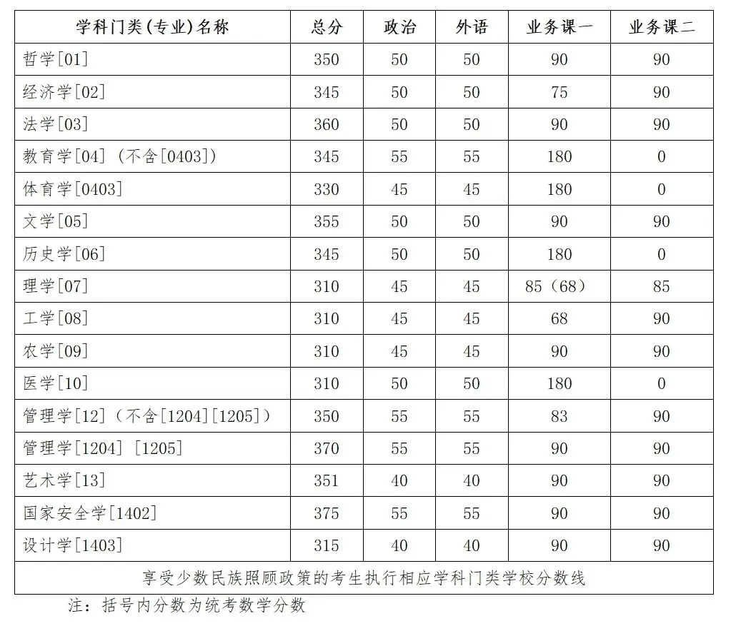 吉林大学2025年硕士研究生招生考试复试基本分数线如下: