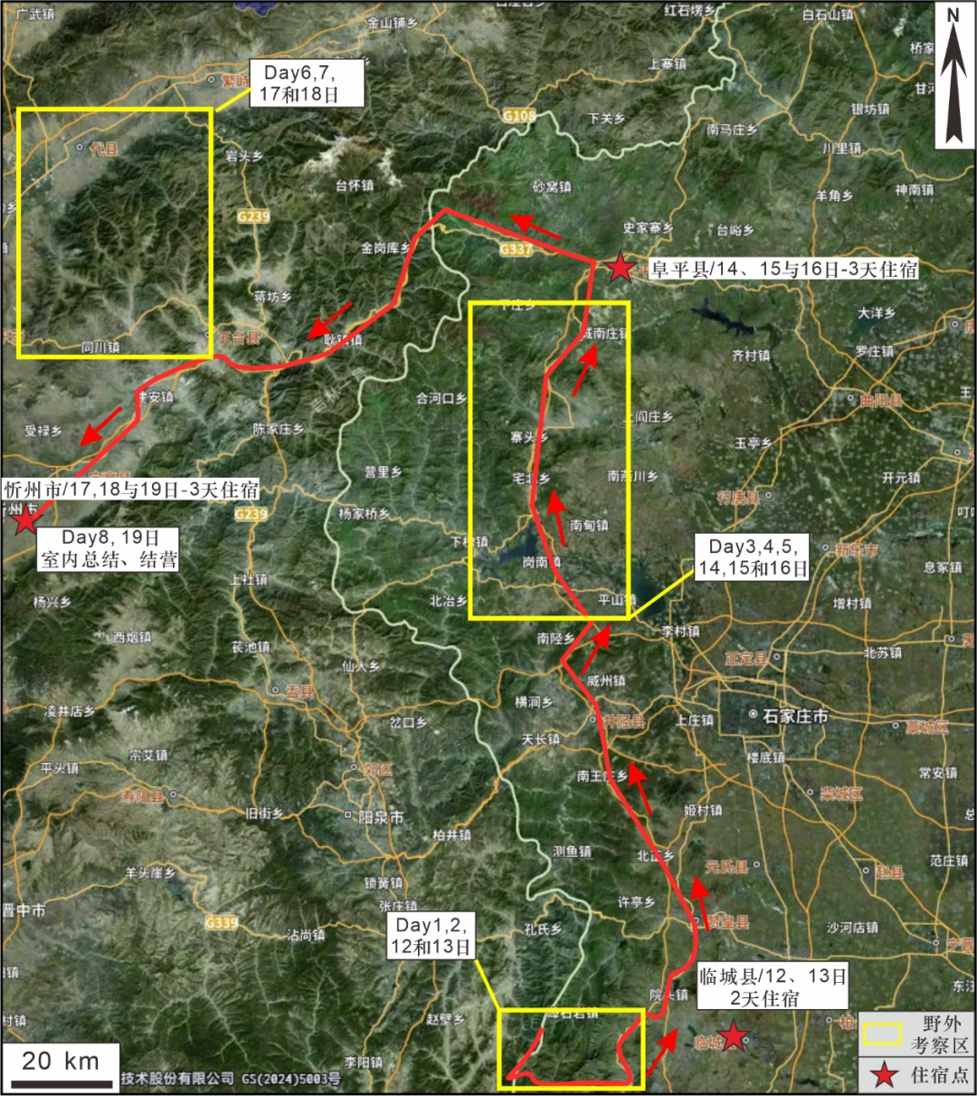 (二)野外考察地区:河北省邢台市、保定市与山西省忻州市等。考察路线图: