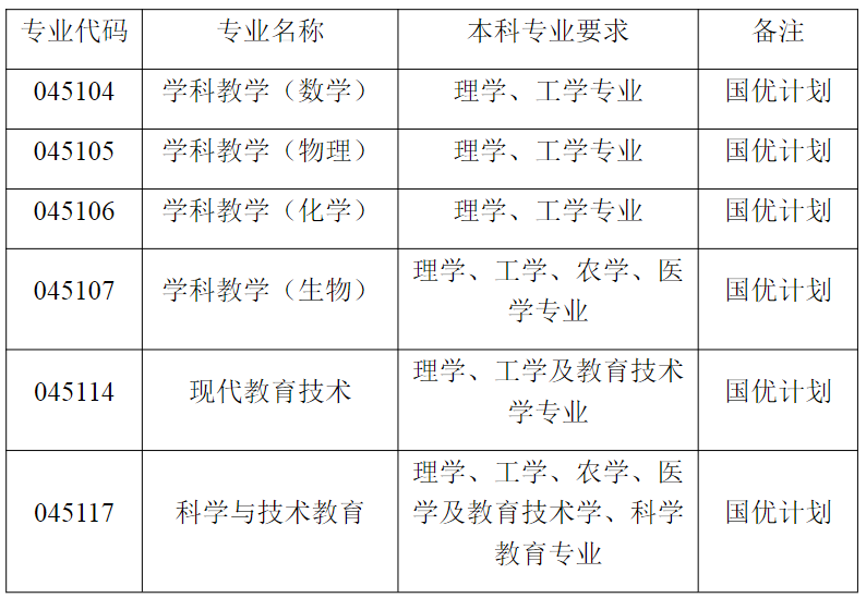 (1)专业学位:具有深厚教育情怀,有志投身中小学科学学科教师岗位,具备教学实践发展潜力;