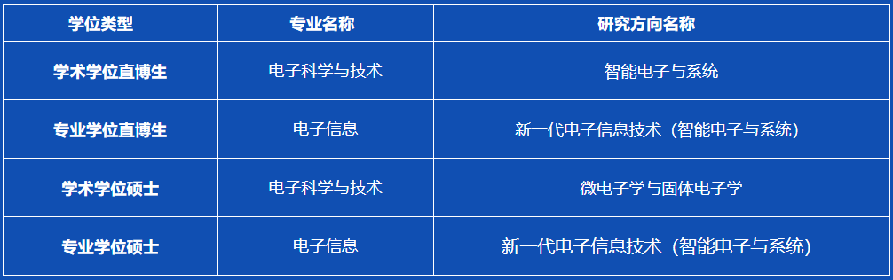 研究院着力打造前沿基础与工程产业相结合的科研育人平台,致力于构建国际化、多元化的人才培养环境。研究院的学术学位硕士研究生和博士研究生对应的专业信息分别为:电子科学与技术(专业名称)内的微电子学与固体电子学(研究方向)和智能电子与系统(研究方向);专业学位硕、博士研究生对应的专业信息为:电子信息(专业名称)内的新一代电子信息技术(智能电子与系统)(研究方向)。欢迎电子科学与技术、电子信息、微电子、集成电路、物理、材料、光电子、芯片与系统、人工智能、信息科学等相关专业背景的优秀学生报名本次夏令营活动!