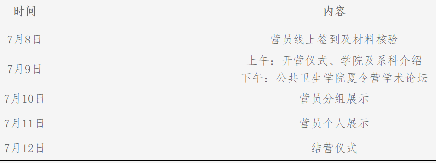 公共卫生学院将根据学生报名信息,综合教育背景、学业水平、综合素质等情况择优遴选,确定入围名单。入围结果可于7月4日左右通过报名系统查询。申请者需在24小时内进入“夏令营报名系统”确认是否参加,逾期未确认视为放弃,将递补后续同学。