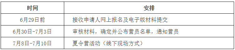 学院夏令营活动专家组将根据学生提交的申请材料,择优确定夏令营营员名单,入选的夏令营营员名单将在学院网站上公布。入选营员要在参营名单公布之日起3日内通过“夏令营系统”确认是否参加,并查收邮件实名加入夏令营活动工作QQ群,逾期未确认视为放弃资格。