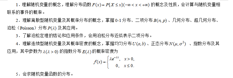 1.理解随机变量数字特征(数学期望、方差、标准差、矩、协方差、相关系数)的概念,会运用数字特征的基本性质,并掌握常用分布的数字特征。